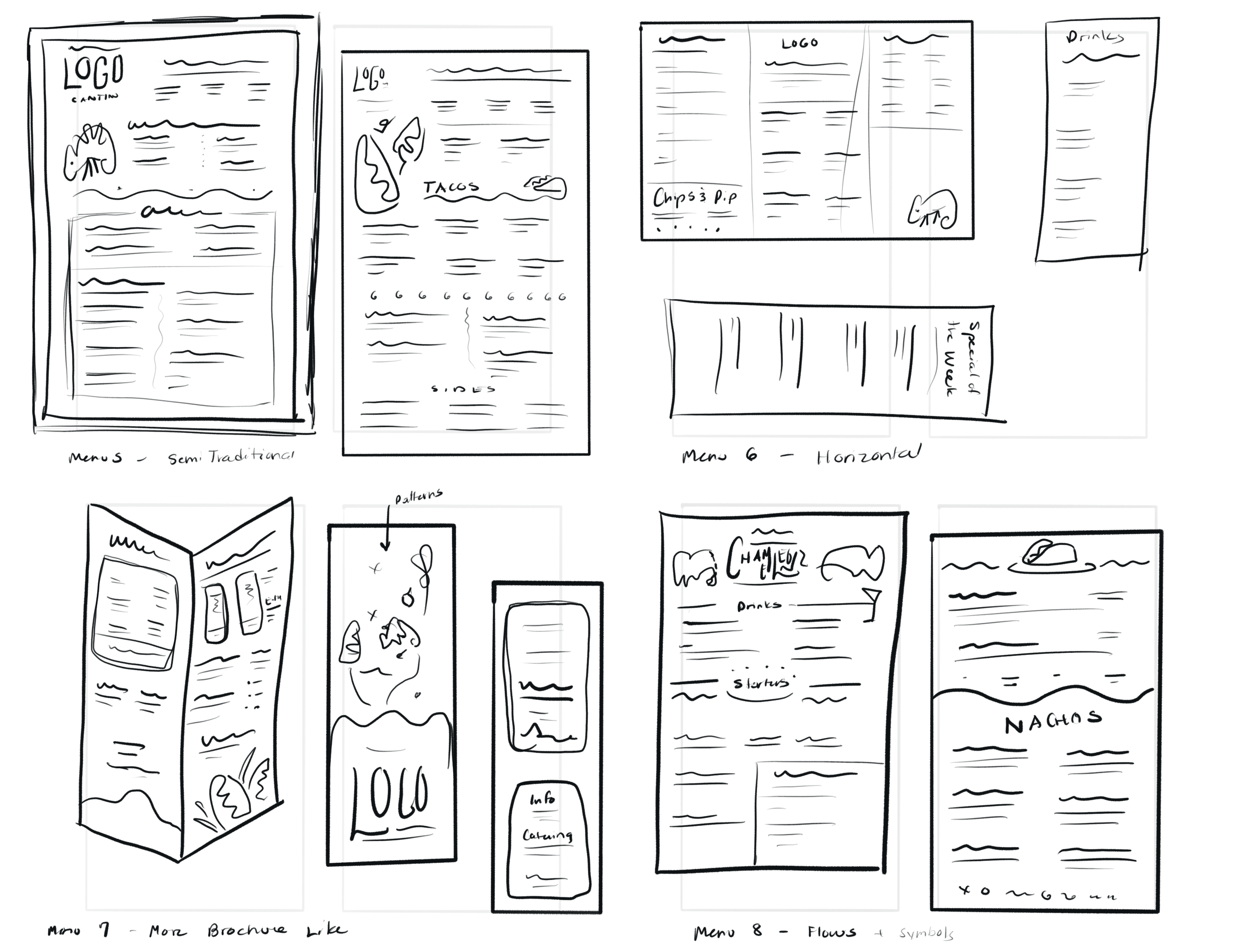 We then had to design the overall layout and look for the menu. I explored a theme with some of my mark-making styles, which proved to be the strongest iterations.