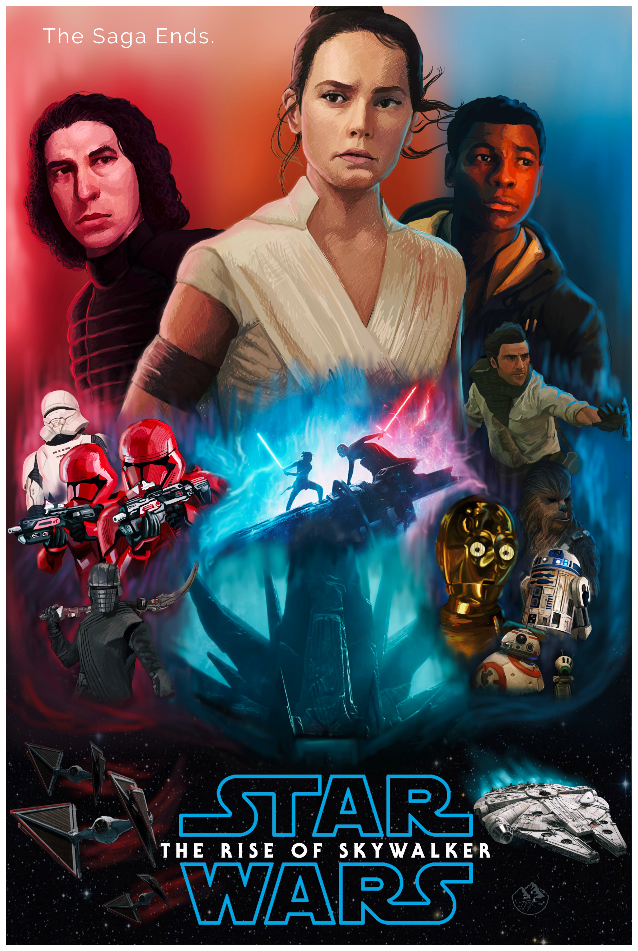 After creating The Lion King poster earlier in the year, I wanted to take a shot at creating one for The Rise of Skywalker. Originally I wanted it to be a continuous poster, but after some edits and iterations, I created a group poster showcasing all the characters. Playing with the different lighting and elements were ashallenge at first, but it turned into a fun exercise. While not every element was drawn [due to time constraints], I’m proud of the turnout of this poster!