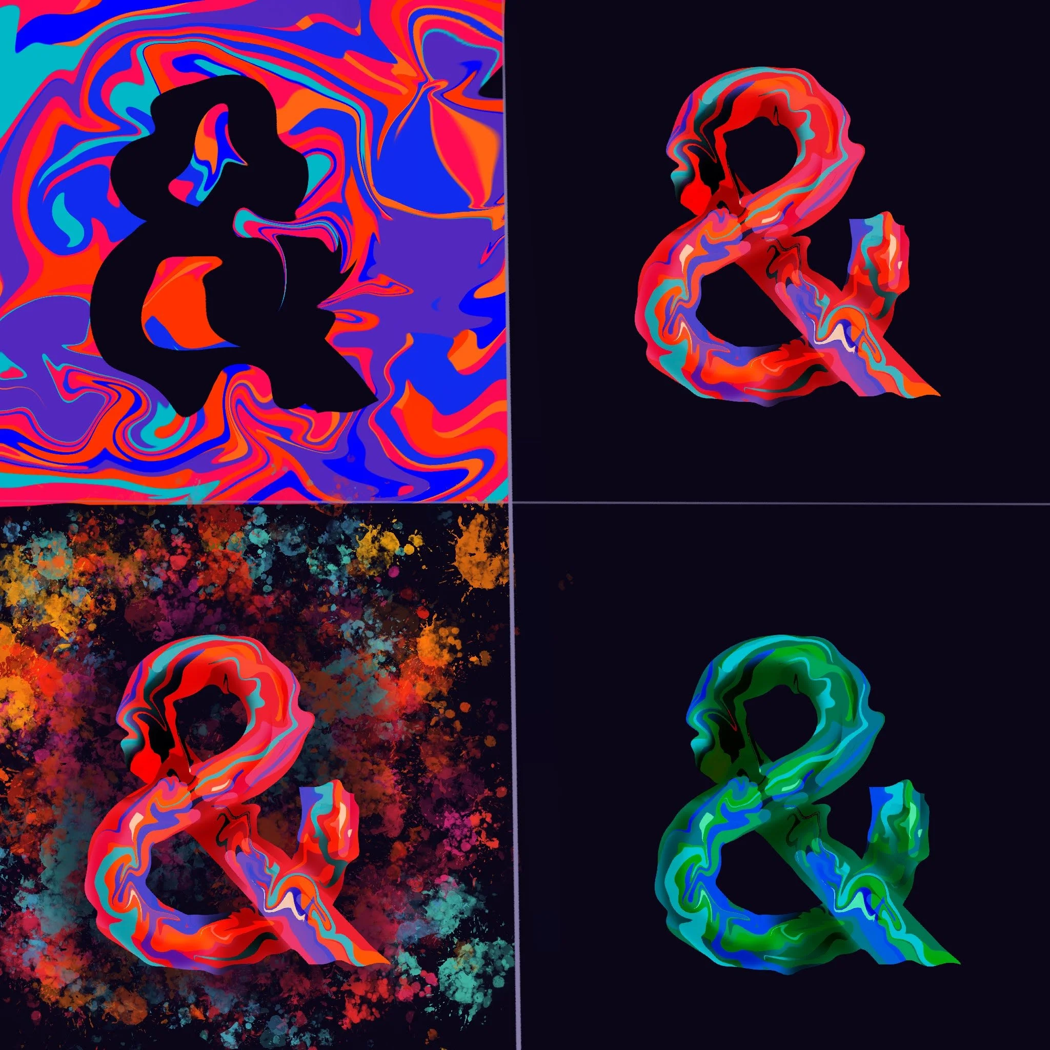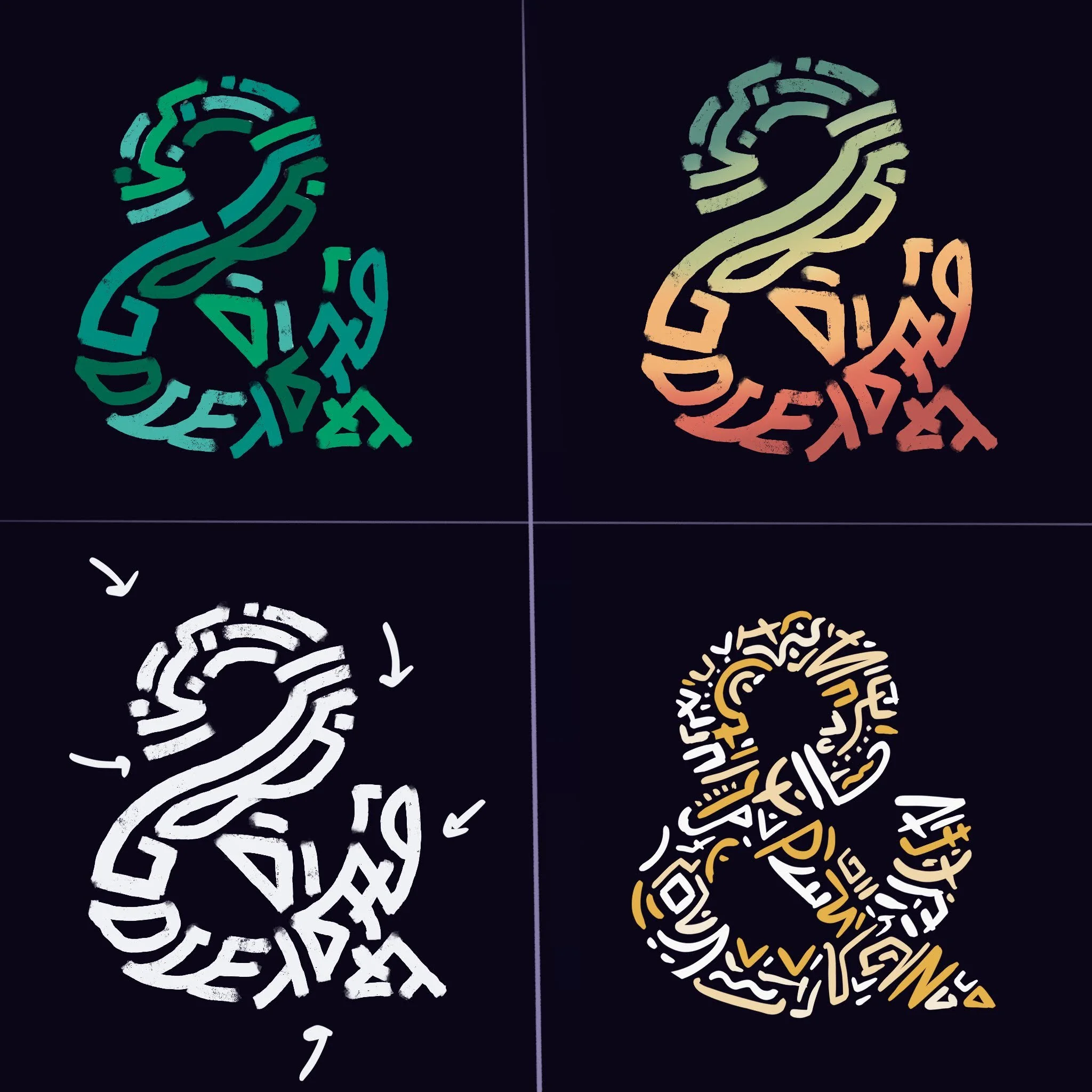 Some of the concepts I explored were using a similar style to what I chose for the alphabet, a play on primary colors and textures, wet paint, and a more linear progression with gradients. My strongest concept was my mark-making style and after exploring some iterations, I landed on the campfire-themed color palate to play with.