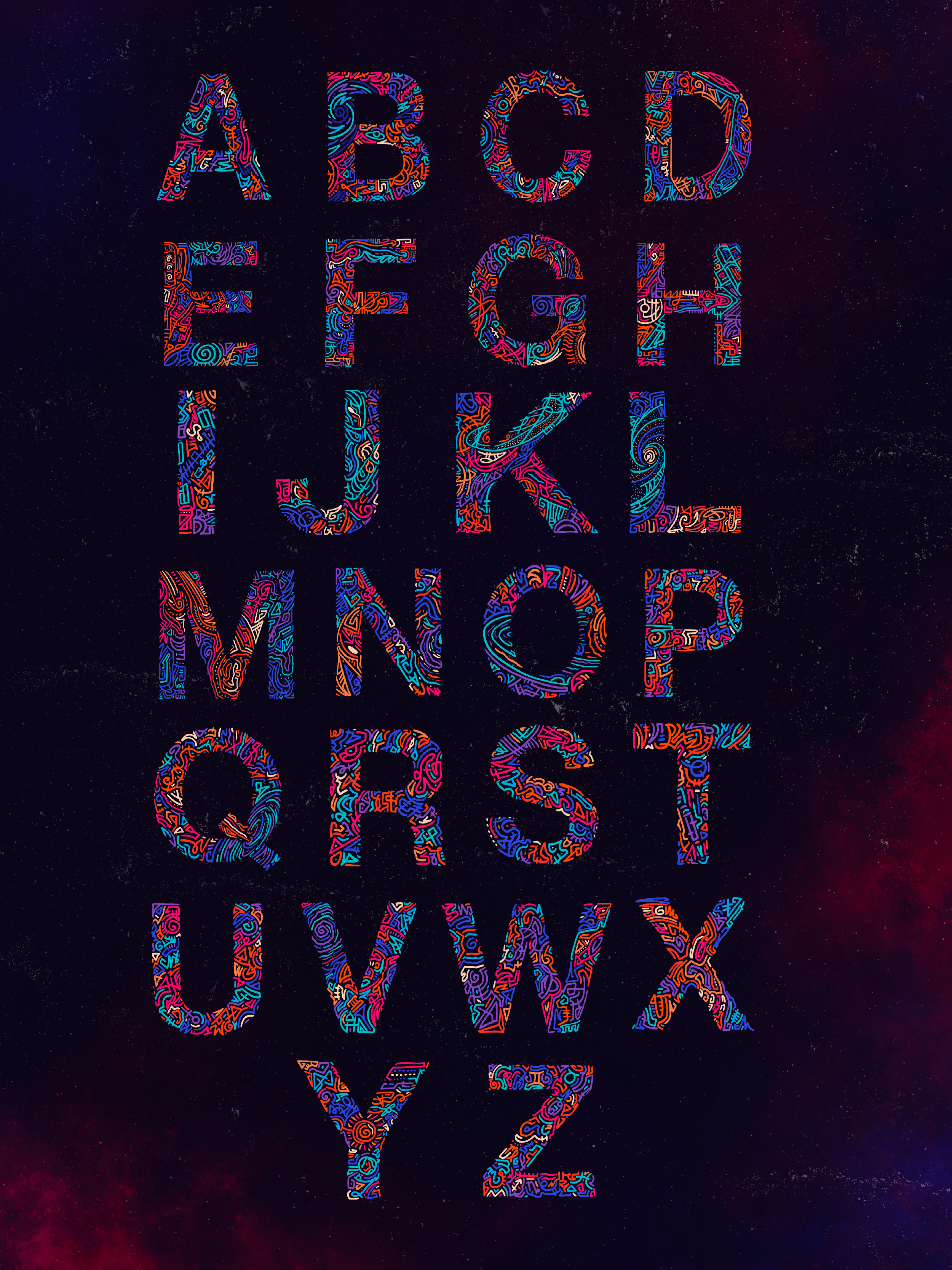 When creating the individual letters, I wanted to include some space-related images One of my favorite aspects of creating these letters was including easter eggs for people to view (ex. an Astronaut in the letter A, meteors in the letter M). I made sure the “easter eggs” stood out by tailoring my color scheme. I went with some pop-culture references for some letters, which was fun to design!